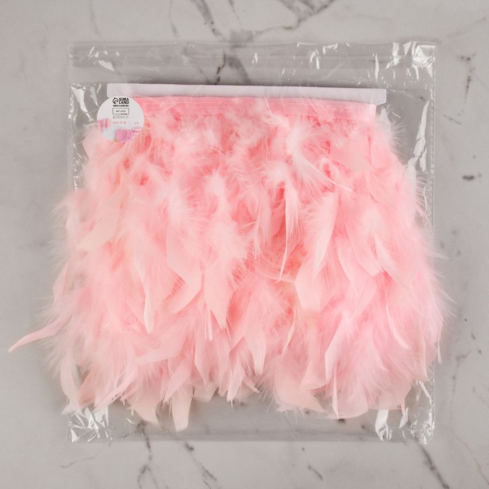 Тесьма с перьями индюка, 13-17 см, 5±0.5 м, розовая
