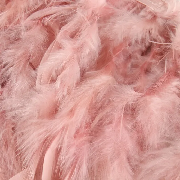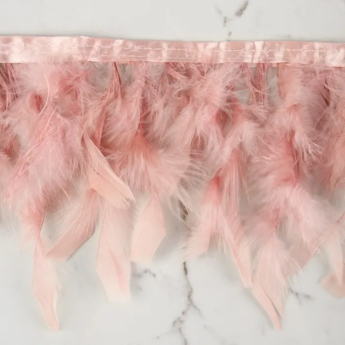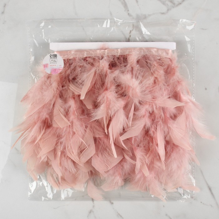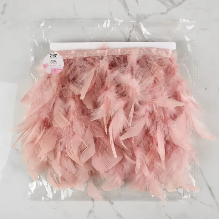 Тесьма с перьями индюка, 13-17 см, 5±0.5 м, светло-розовая
