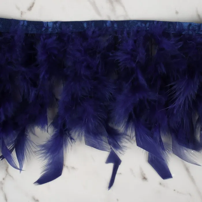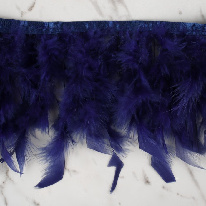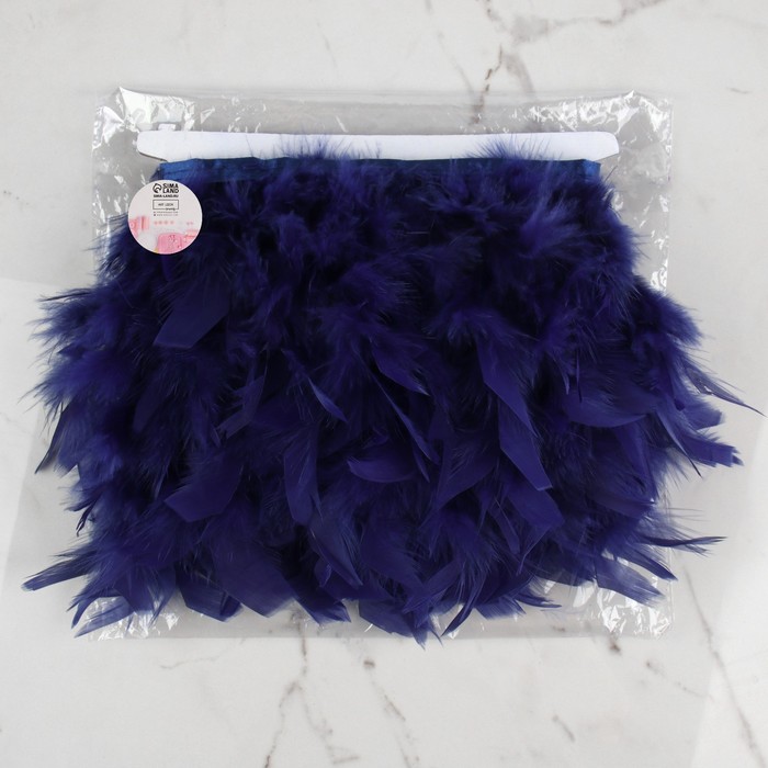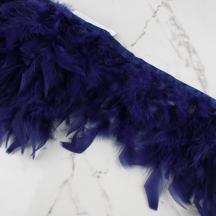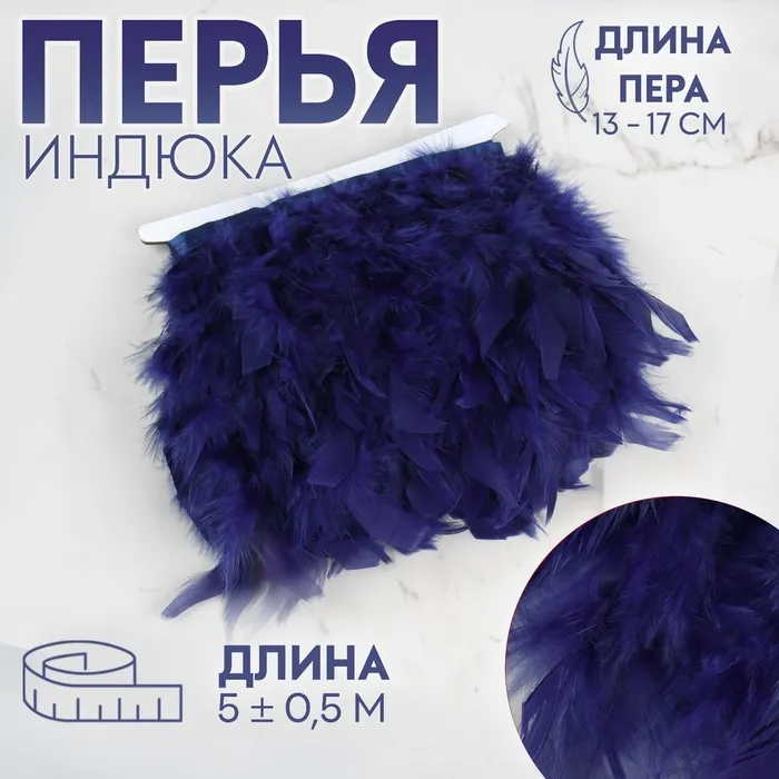 Тесьма с перьями индюка, 13-17 см, 5±0.5 м, тёмно-синяя