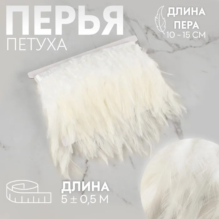Тесьма с перьями петуха, 10-15 см, 5±0.5 м, белая — Характеристики