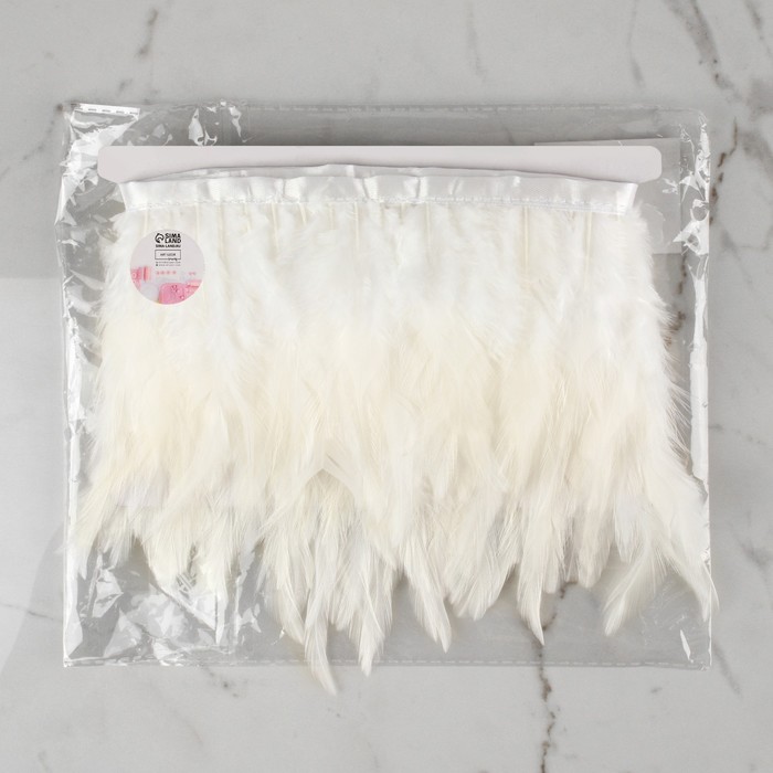 Тесьма с перьями петуха, 10-15 см, 5±0.5 м, белая