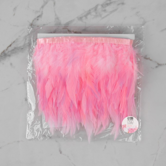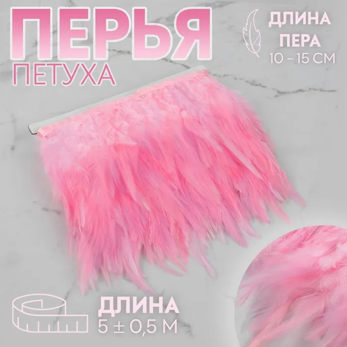 Тесьма с перьями петуха, 10-15 см, 5±0.5 м, розовая — Характеристики
