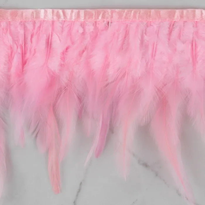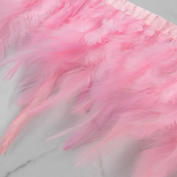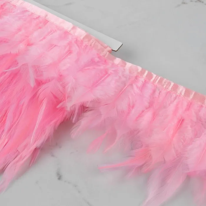 Тесьма с перьями петуха, 10-15 см, 5±0.5 м, розовая