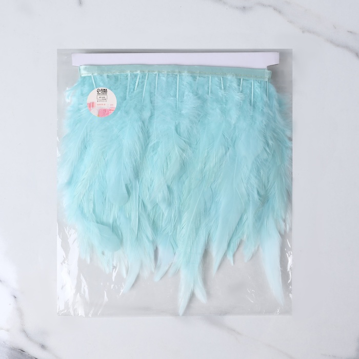 Тесьма с перьями петуха, 10-15 см, 5±0.5 м, светло-голубая
