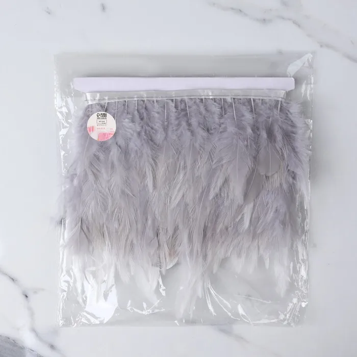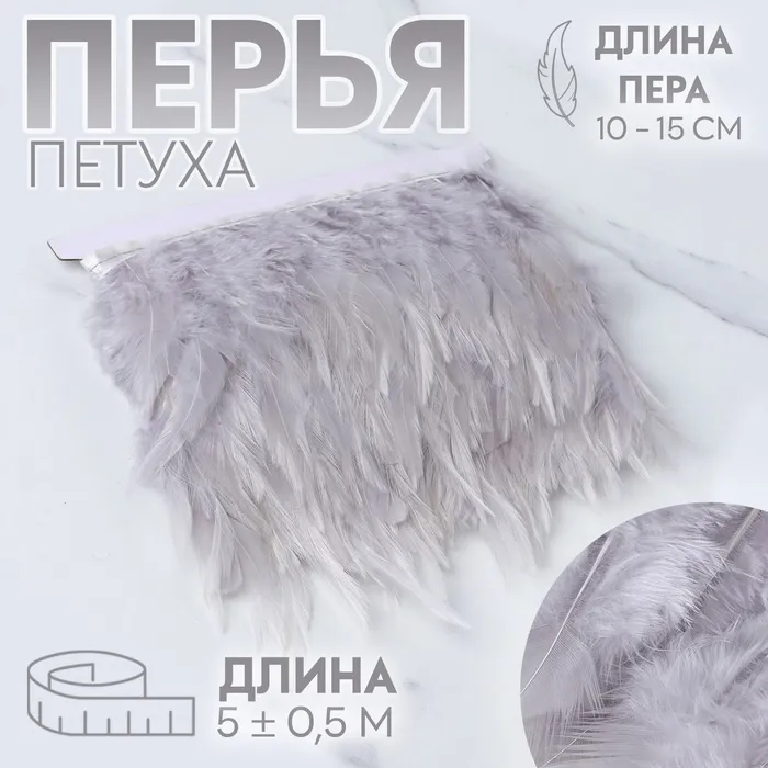 Тесьма с перьями петуха, 10-15 см, 5±0.5 м, светло-серая — Характеристики