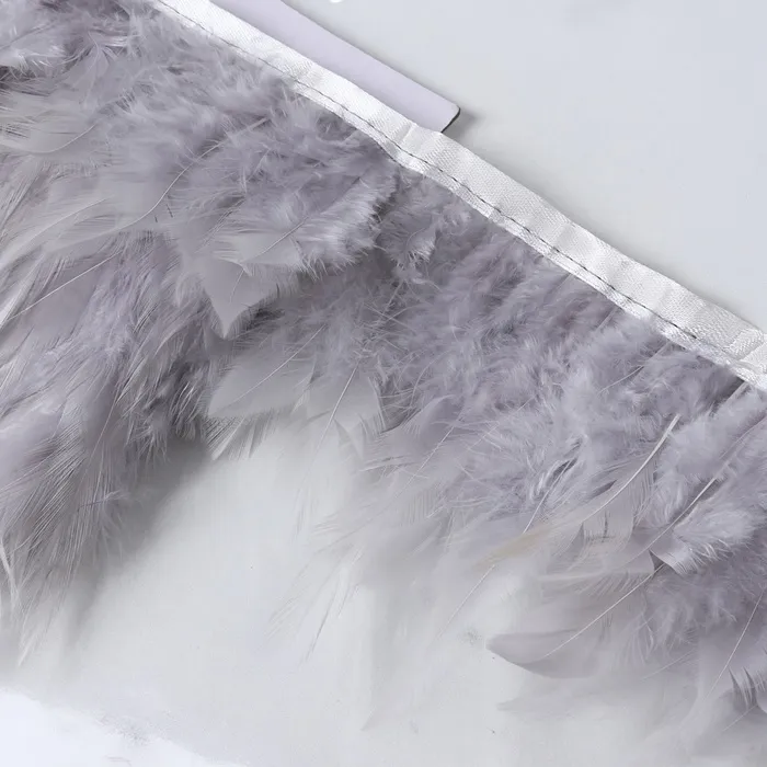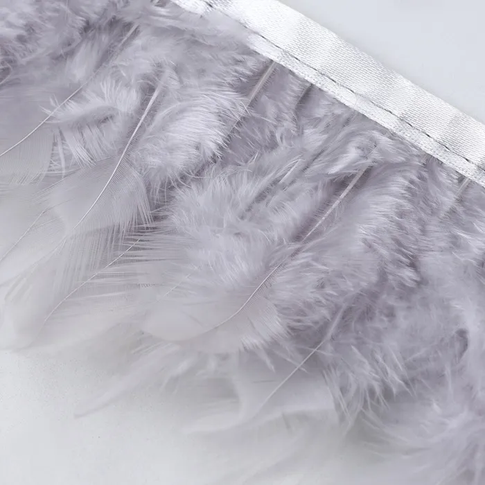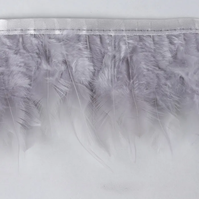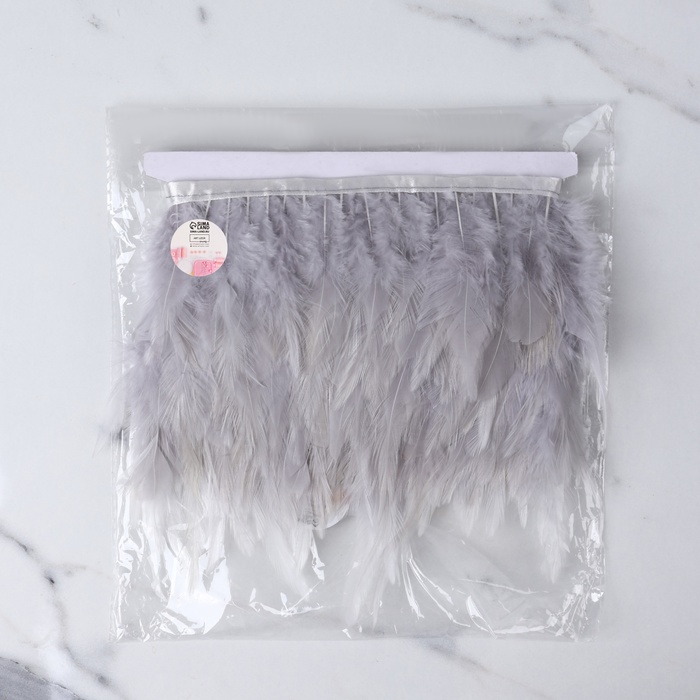 Тесьма с перьями петуха, 10-15 см, 5±0.5 м, светло-серая