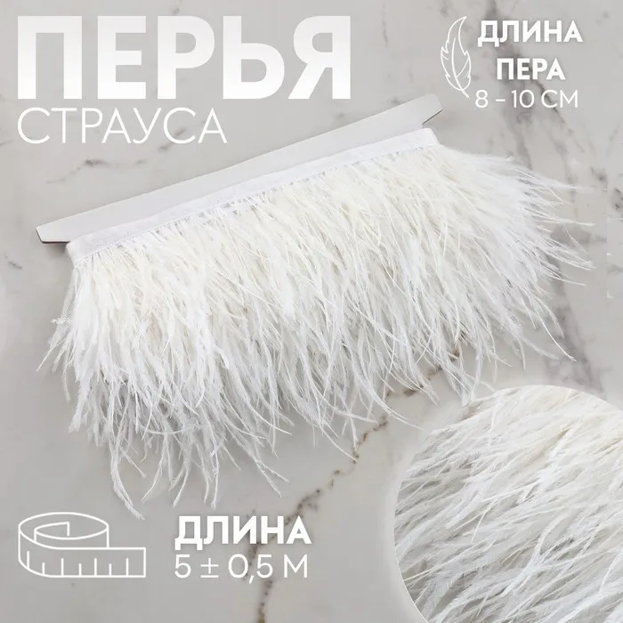 Тесьма с перьями страуса, 8-10 см, 5±0.5 м, белая — Характеристики