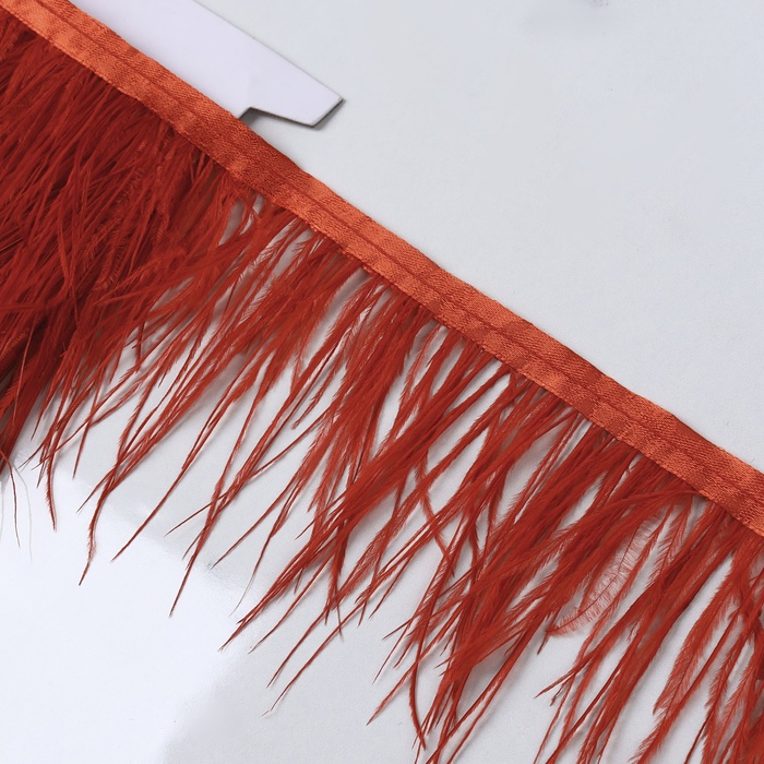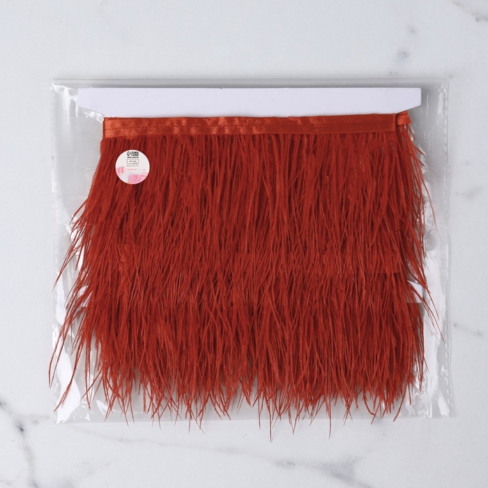 Тесьма с перьями страуса, 8-10 см, 5±0.5 м, красная — Характеристики