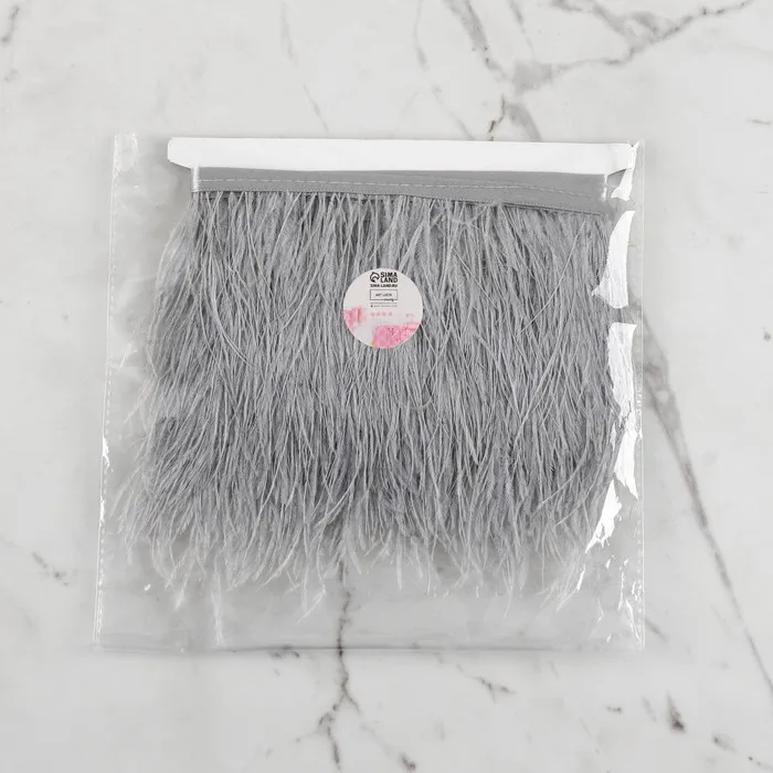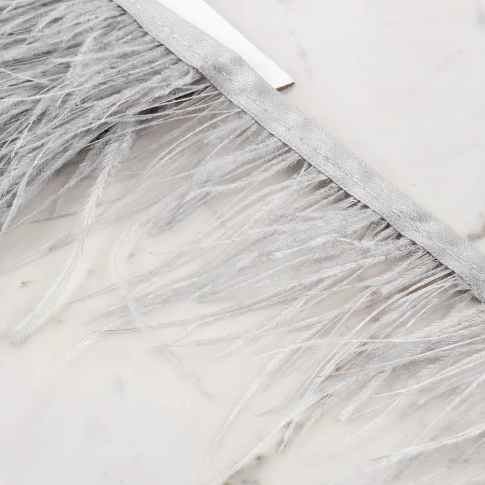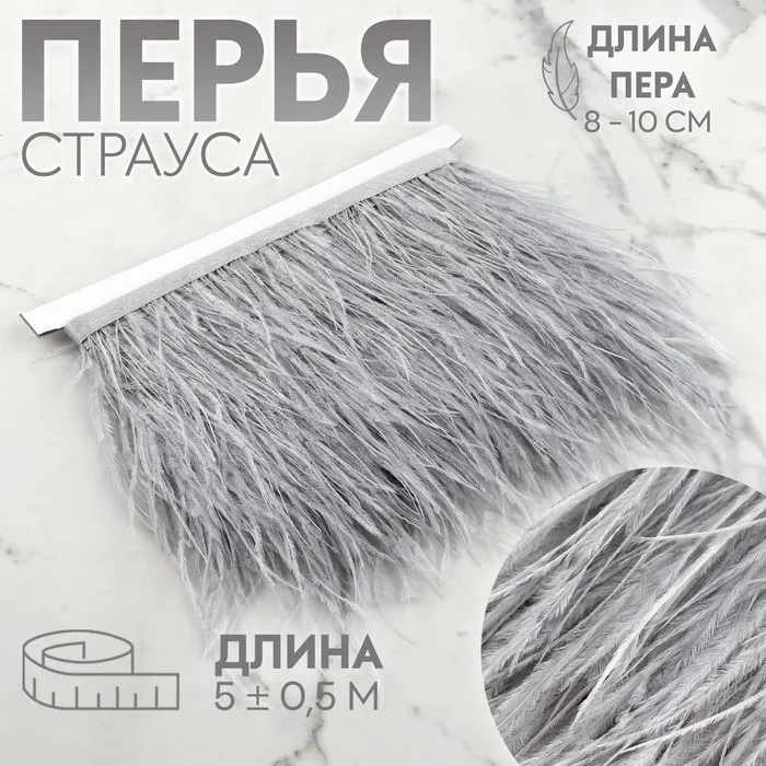 Тесьма с перьями страуса, 8-10 см, 5±0.5 м, светло-серая — Характеристики