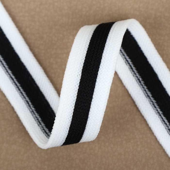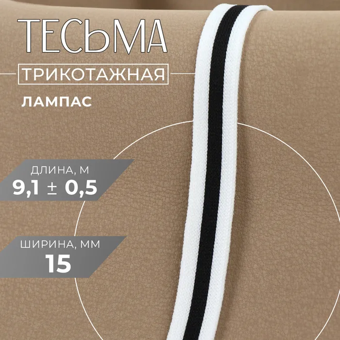 Тесьма трикотажная лампас 15 мм, 9.1±0.5 м, белая, чёрная — Характеристики