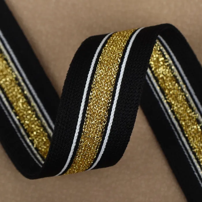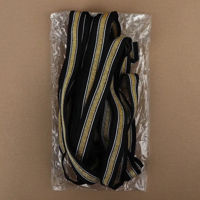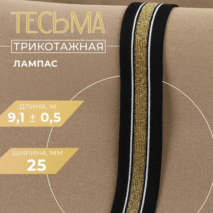 Тесьма трикотажная лампас 25 мм, 9.1±0.5 м, цвет чёрный, золотой — Характеристики