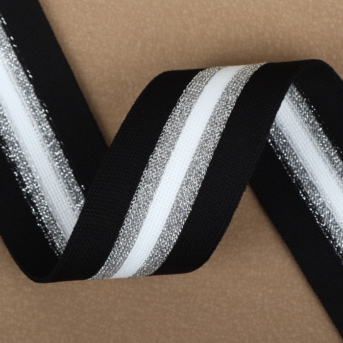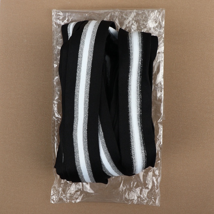 Тесьма трикотажная лампас 25 мм, 9±0.5 м, цвет чёрный, серебряный