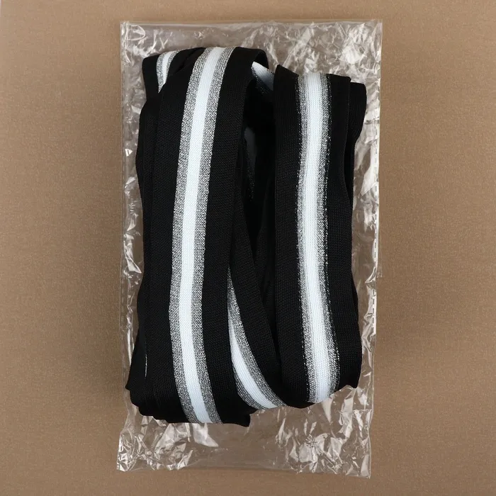 Тесьма трикотажная лампас 40 мм, 9.1±0.5 м, чёрная, белая
