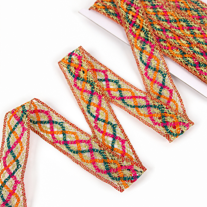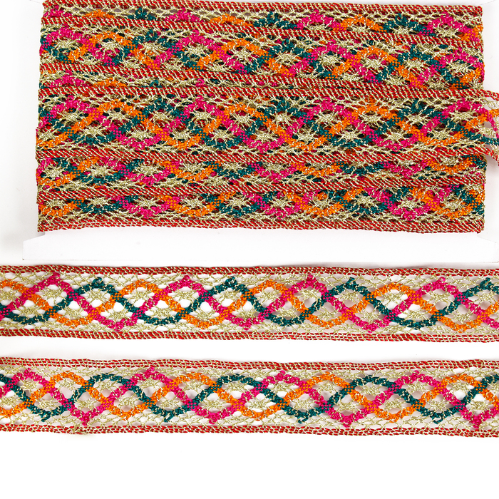 Тесьма цветная с люрексом, 3 см, в рулоне 10 метров