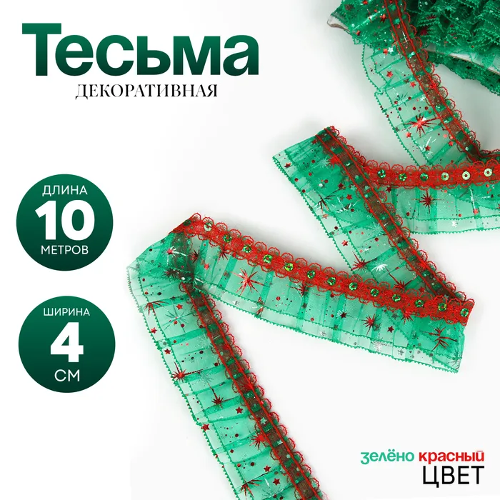 Тесьма зелено красная 4 см намотка 10 метров — Характеристики