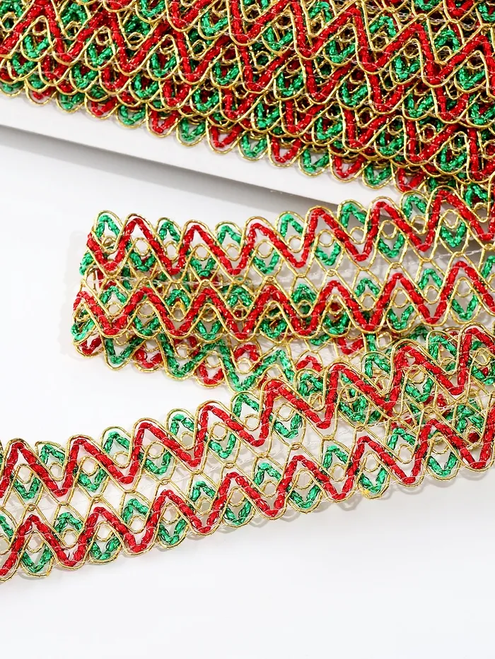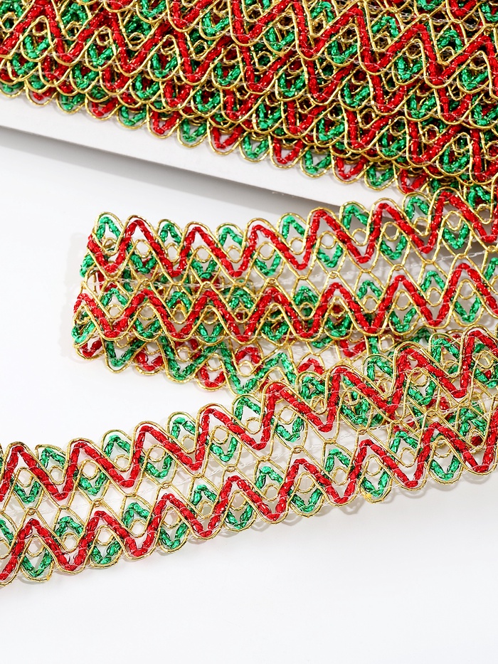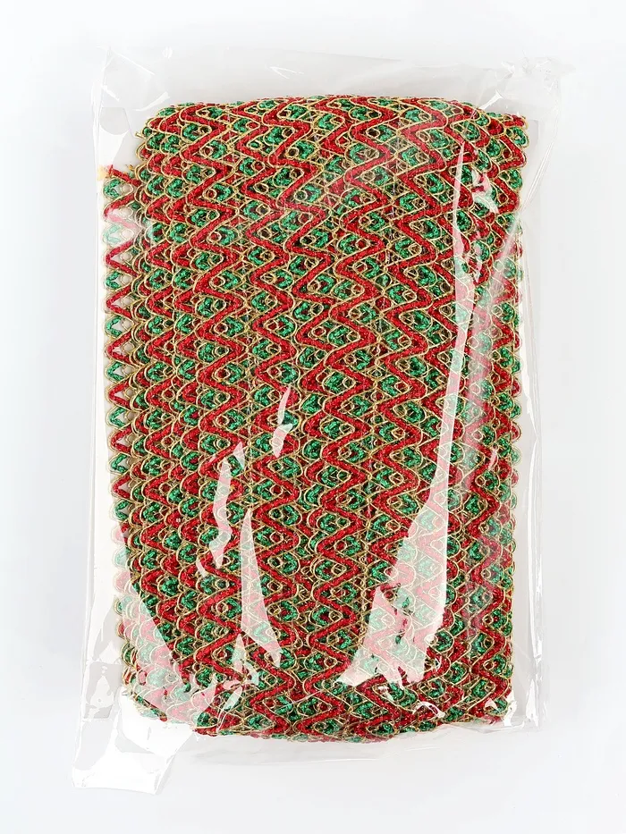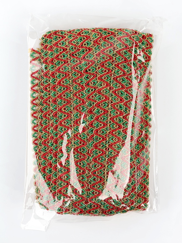 Тесьма Зигзаг зелено-красно-золотая 3.5 см намотка 25 метров