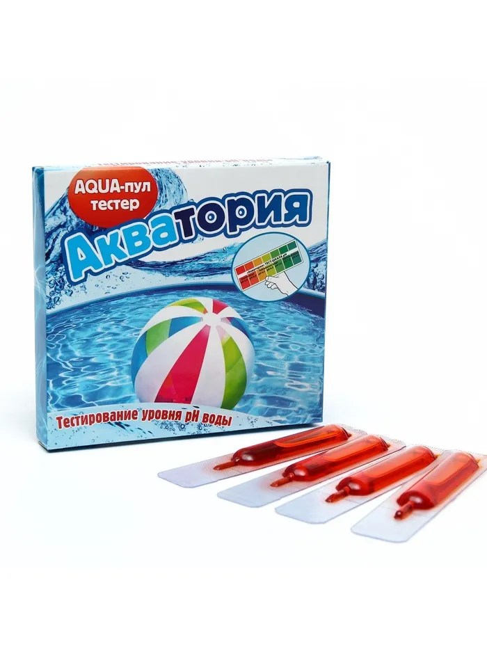 «Акватория AQUA-пул-тестер» — это универсальный кислотно-основной индикатор, рассчитан на проведение анализа пяти образцов воды. Препарат предназначен для определения уровня кислотности воды бассейна в интервале от 5 до 8 (шаг — 0,5).