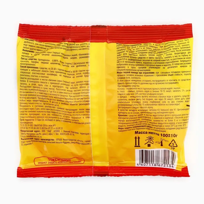 Тесто-брикеты содержат активные компоненты, которые привлекают грызунов и приводят к их гибели через короткий период времени после употребления средства. Благодаря этому гарантируется полное избавление от нежелательных гостей.