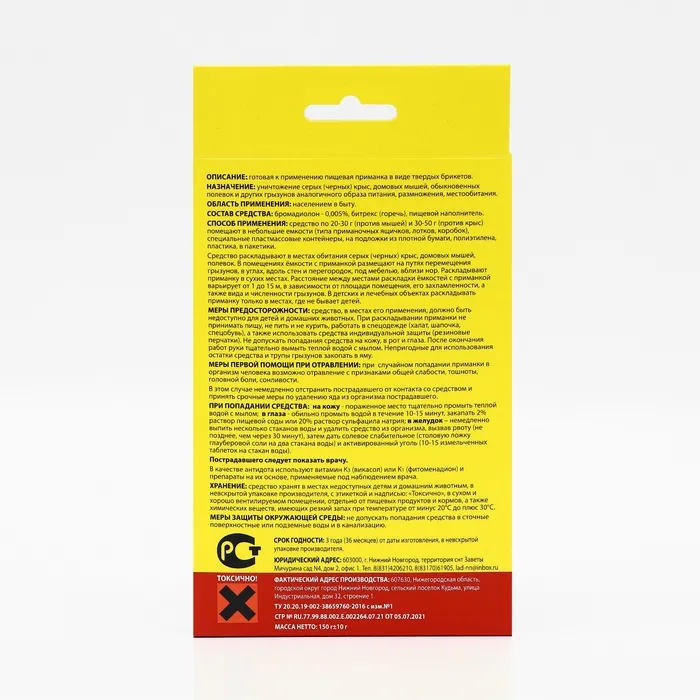 С «Тестовыми брикетами «Том Кот»» спокойствие и безопасность вашего дома становятся легко достижимыми. Забудьте о непрошеных гостях раз и навсегда, воспользовавшись данным средством. Это ваш надежный выбор в борьбе с грызунами!