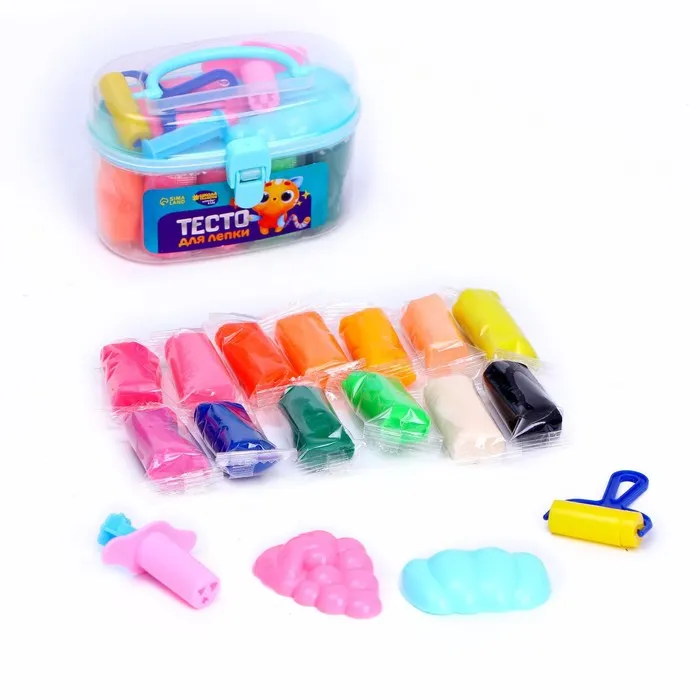 Набор теста для лепки станет отличным выбором для творчества детей. В комплект входят несколько ярких цветов теста, формочки, шприц и каток, что открывает простор для создания уникальных поделок и игр. Тесто изготовлено на растительной основе, поэтому оно безопасно для малышей и экологично.
