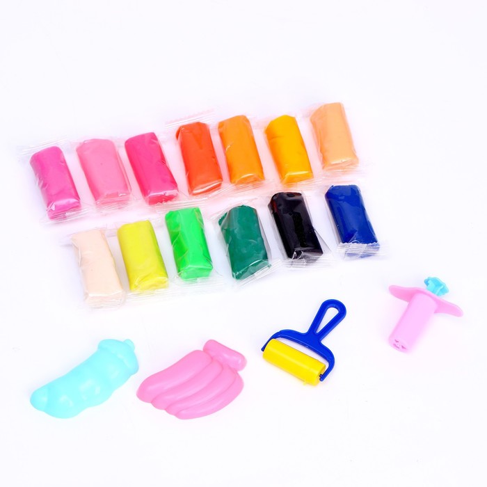 Тесто для лепки, 13 цветов, 200 г, 2 формочки, каток, шприц, МИКС — Характеристики
