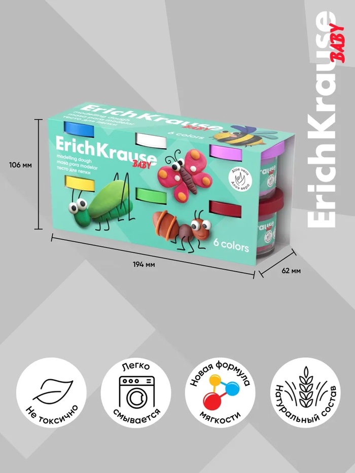 Палитра содержит яркие сочные цвета, которые отлично смешиваются между собой, создавая новые оттенки. Удлиненная форма бруска позволяет легко отделить необходимое количество пластилина для поделки. Каждый брусок имеет индивидуальную упаковку «flow-pack», которая надежно сохраняет товарный вид и пластичные свойства продукта. Обновленная эргономичная коробка-пенал с клапанами и поддон без коррекса удобна в использовании. В комплекте для декорирования и моделирования прилагается стек.