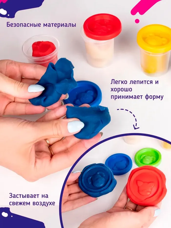 Набор для лепки из теста-пластилина — отличный способ развития творческих способностей малышей. Весёлая лепка из мягкого пластилина развивает мелкую моторику и воображение, знакомит с формами и цветами.