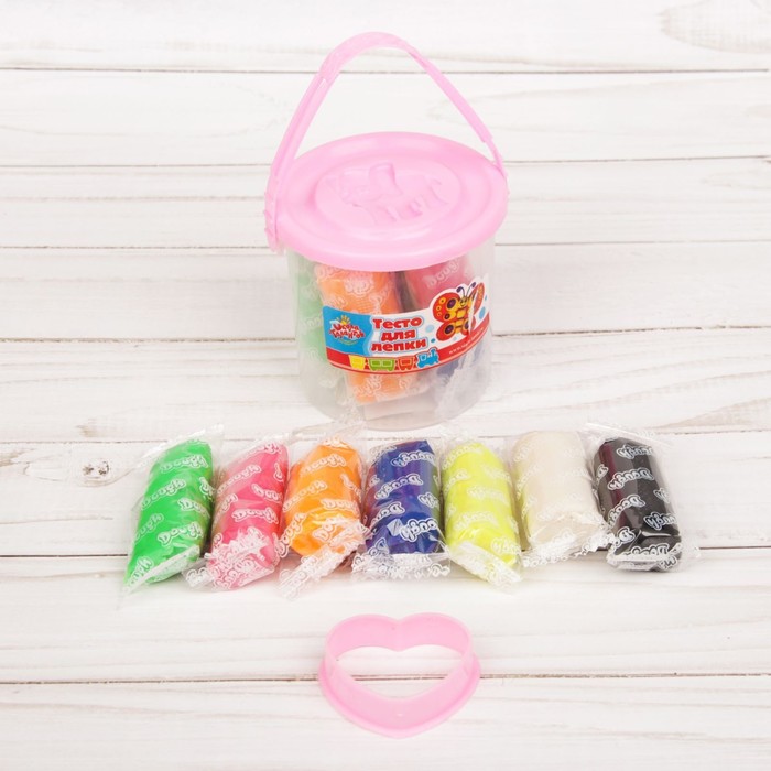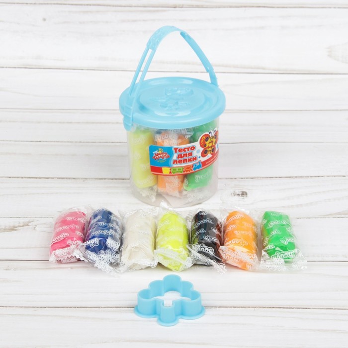 Тесто для лепки 7 цветов, 105 гр, 1 формочка, крышка - формочка, МИКС — Характеристики