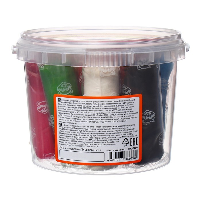 Тесто для лепки «Мульти-Пульти. Енот в деревне», 12 цветов по 30 г, пластиковое ведро — Характеристики