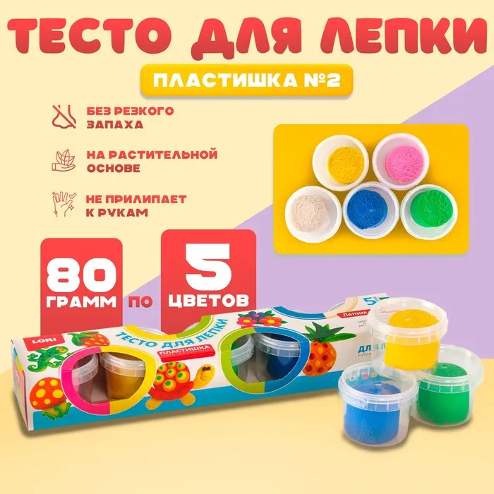 Тесто для лепки «Пластишка № 2», 5 цветов по 80 г — Характеристики
