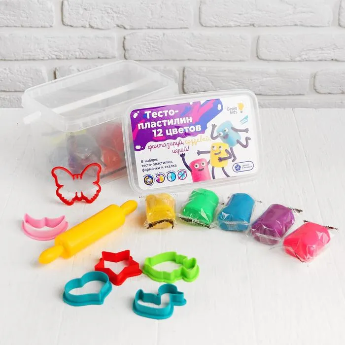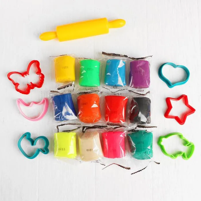 Тесто-пластилин, 12 цветов, 6 формочек + скалка: 16 см — Характеристики