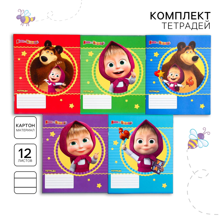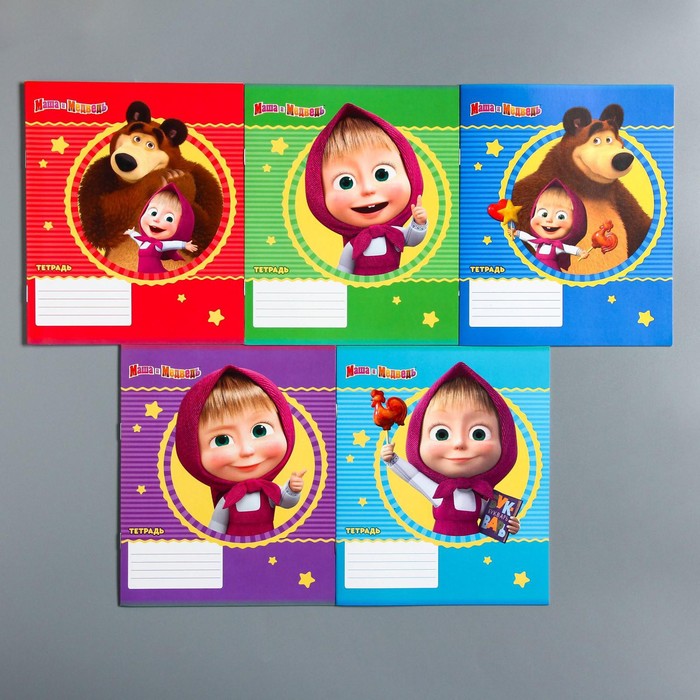 Тетрадь 12 листов, 10 штук в линейку, обложка мелованная бумага, «Маша и медведь» — Характеристики