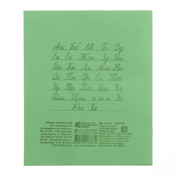 Тетрадь 12 листов косая линейка «Зелёная обложка», плотность 60 г/м², белизна 92% — Характеристики