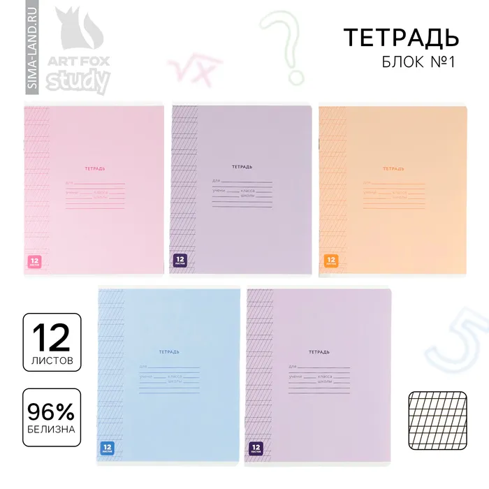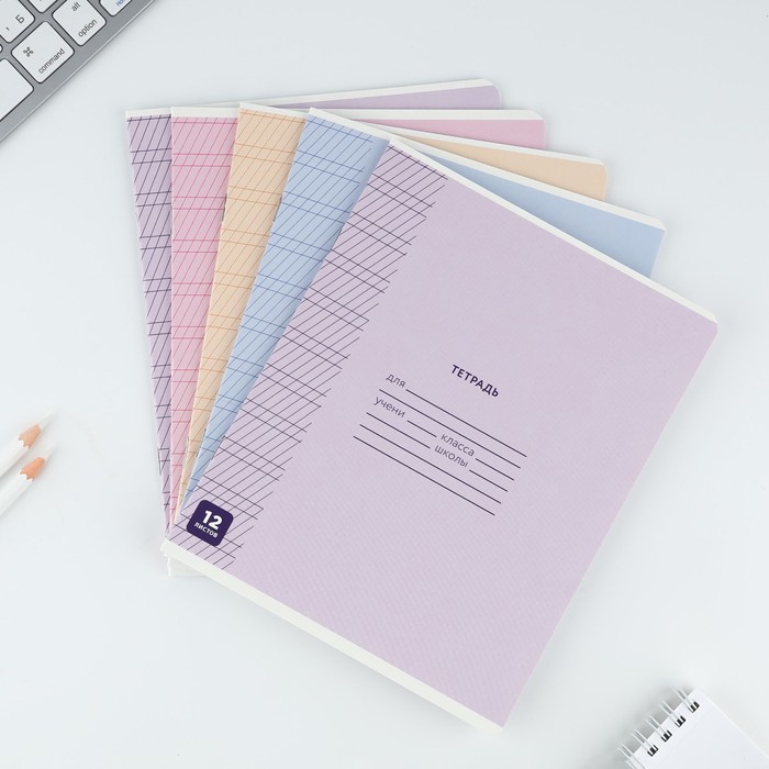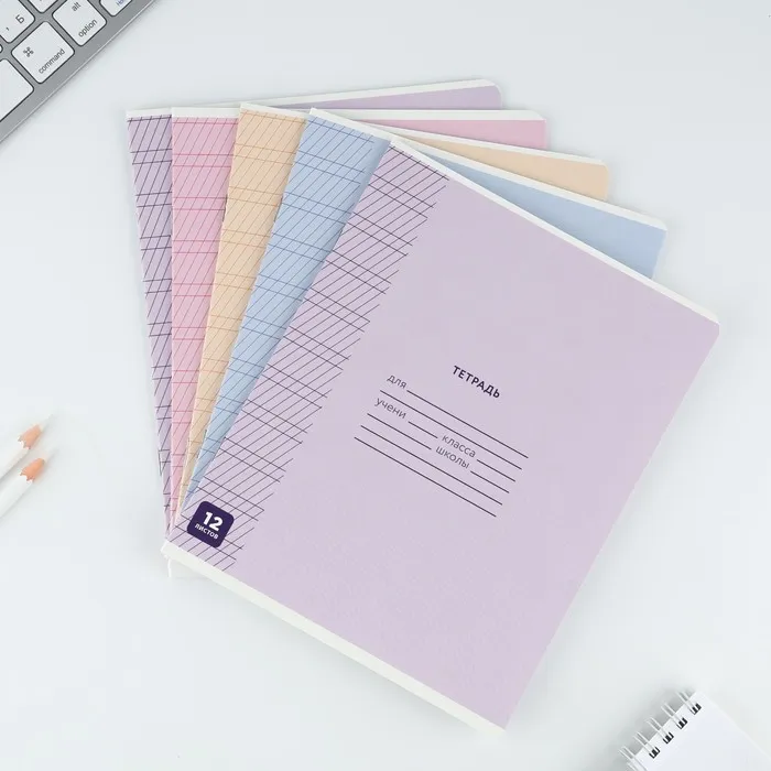 Тетрадь 12 листов в частую косую линейку, А5, на скрепке, блок №1 «Минимализм» МИКС — Характеристики