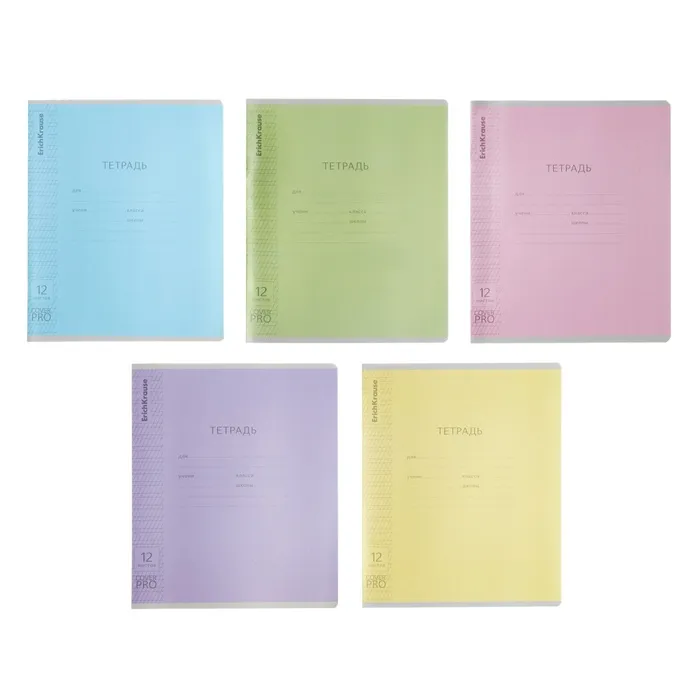 Тетрадь 12 листов в частую косую линейку, ErichKrause «Классика CoverPrо», пластиковая обложка, МИКС — Характеристики