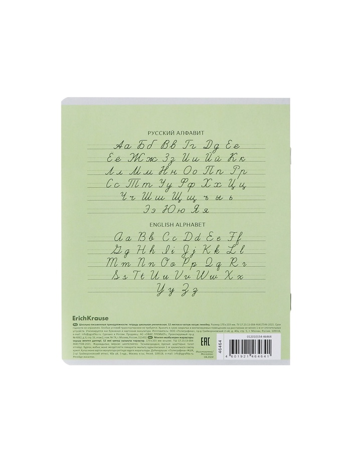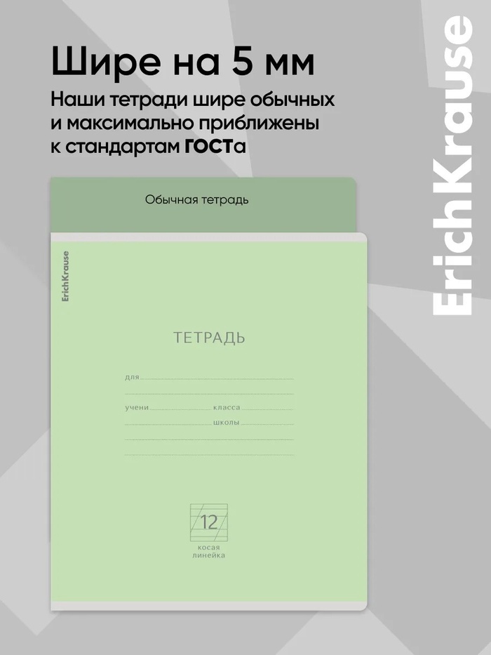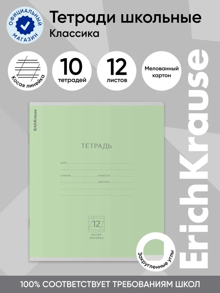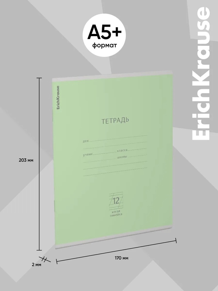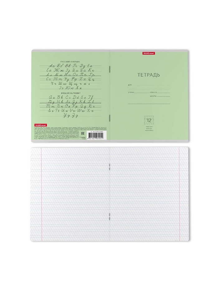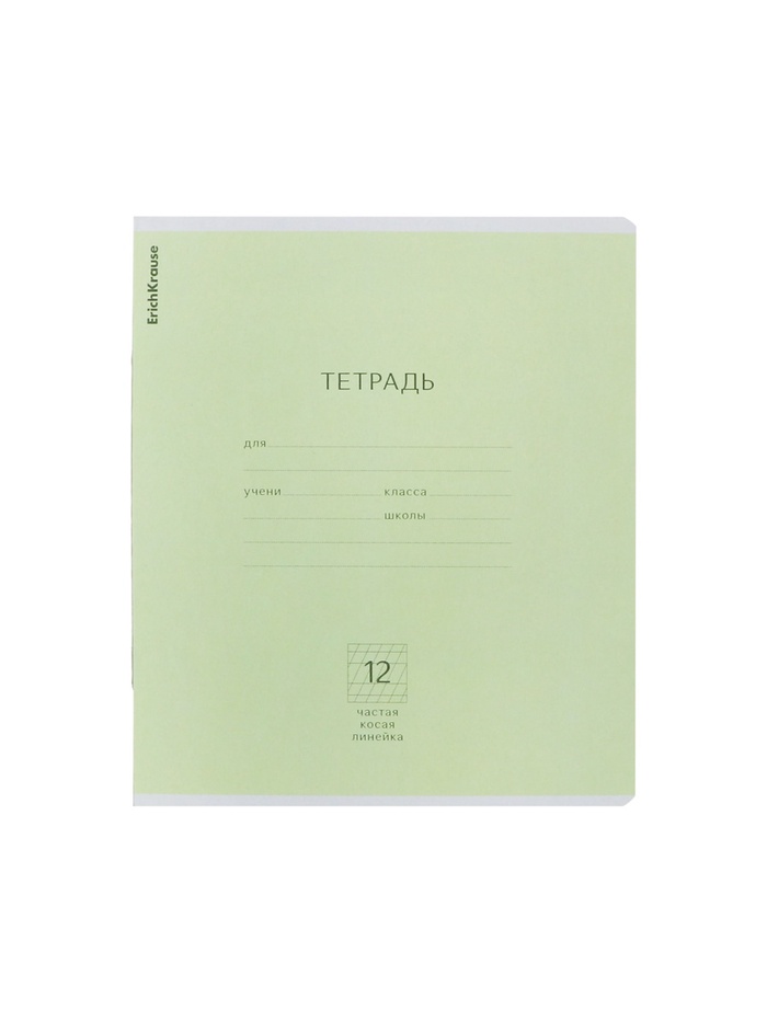 Тетрадь 12 листов в частую косую линейку, ErichKrause «Классика», зелёная — Характеристики