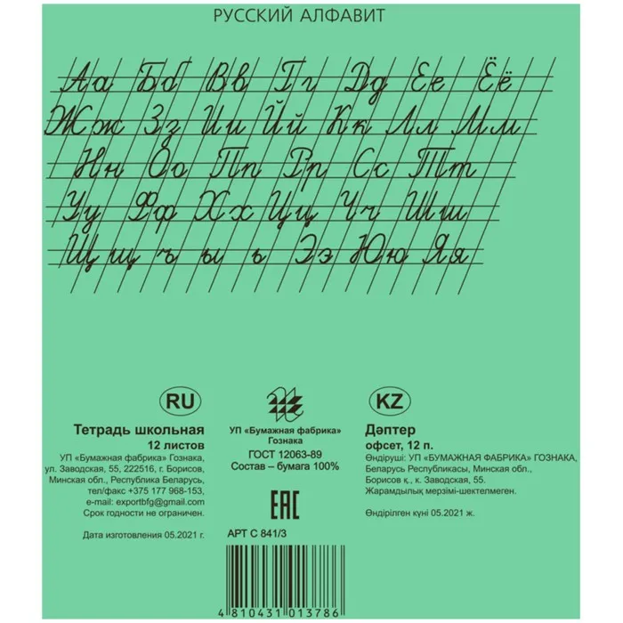 Тетрадь 12 листов в частую косую линейку «зелёная обложка» бумажная фабрика, офсет №1, 60 г/м², белизна 96% — Характеристики