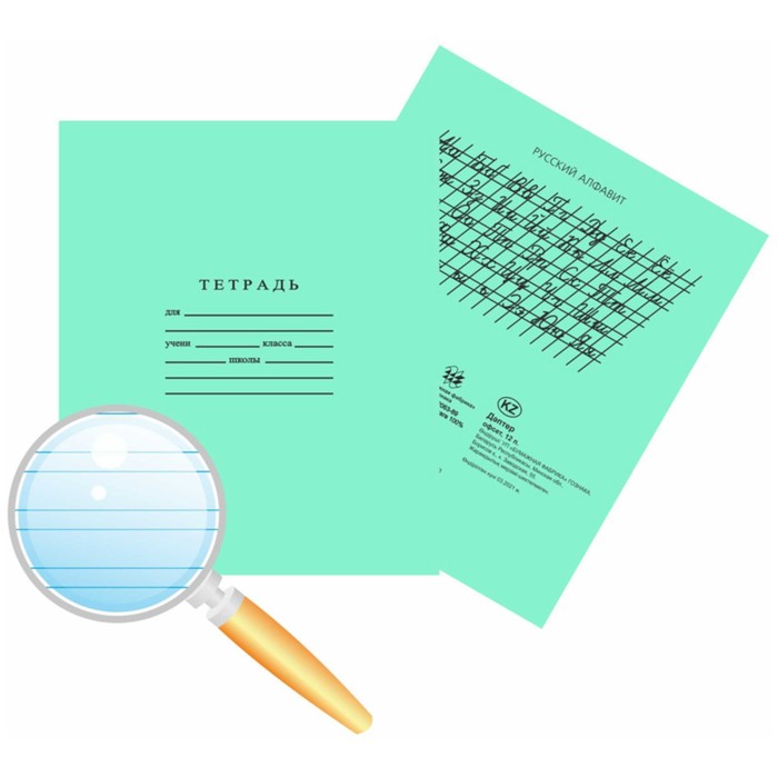 Тетрадь 12 листов в частую косую линейку «зелёная обложка» бумажная фабрика, офсет №1, 60 г/м², белизна 96% — Характеристики