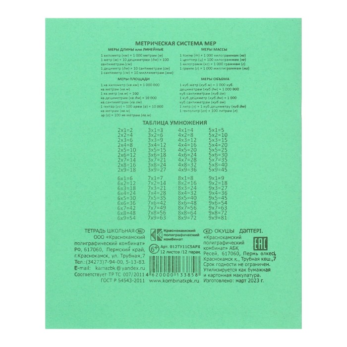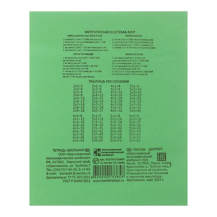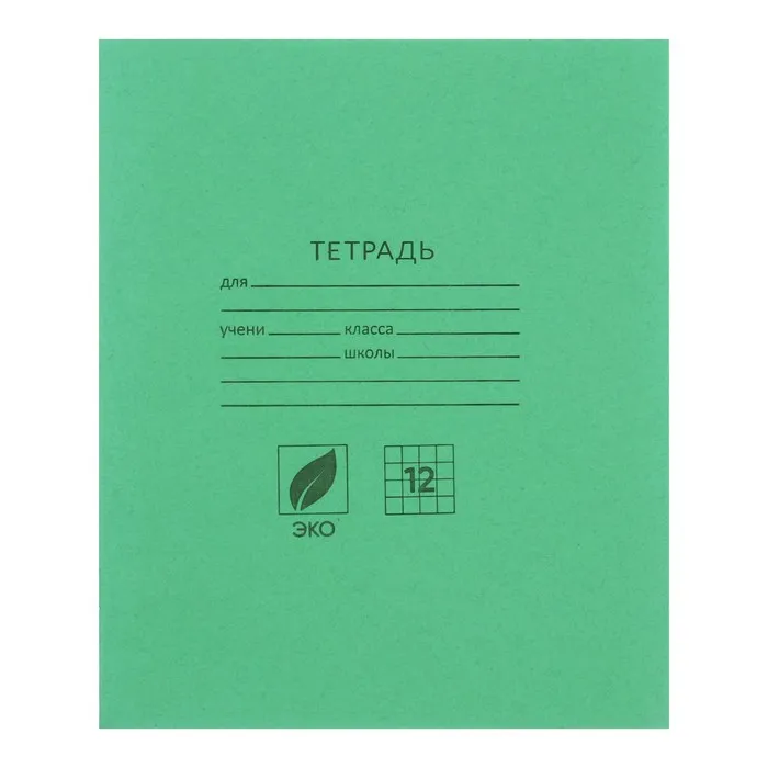 Тетрадь 12 листов в клетку «Зелёная обложка», плотность 60 г/м², белизна 92% — Характеристики