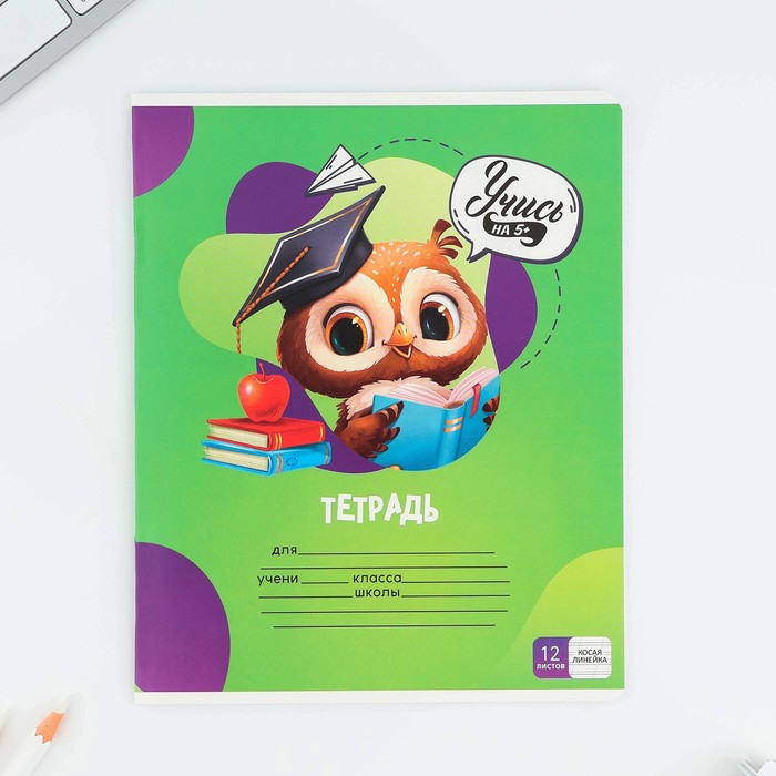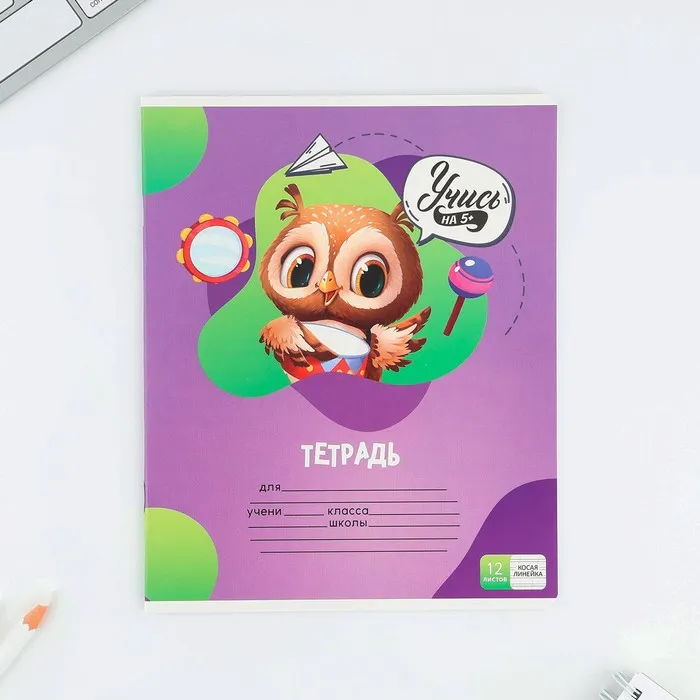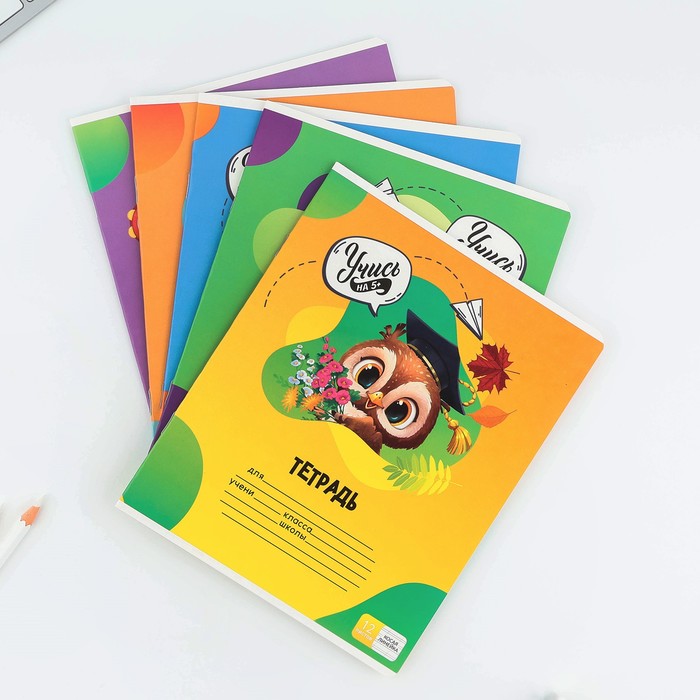 Тетрадь 12 листов в косую линейку, А5, на скрепке, блок №1 «Учись на 5+» МИКС — Характеристики