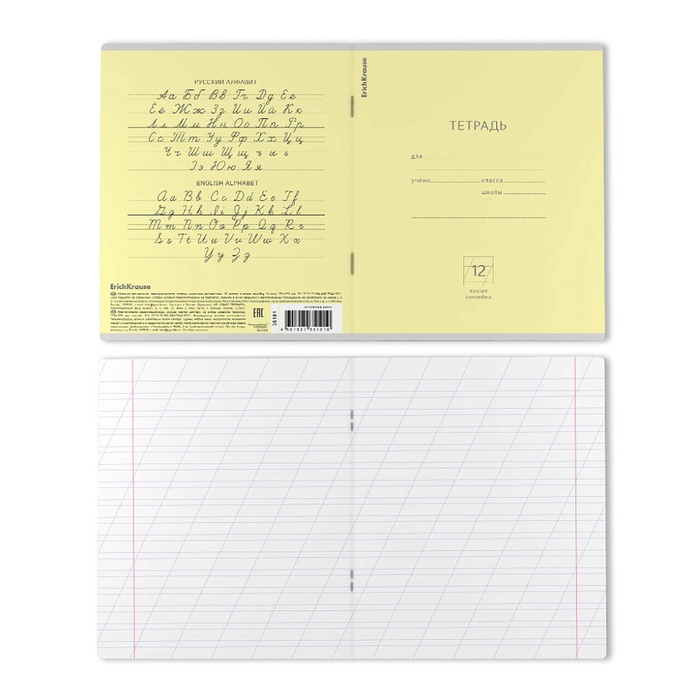 Тетрадь 12 листов в косую линейку, ErichKrause «Классика», обложка мелованная бумага, желтая — Характеристики