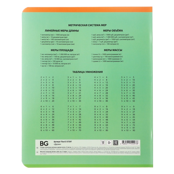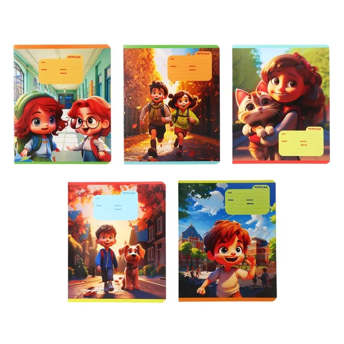 Тетрадь 12 листов в крупную клетку на скрепке "Друзья", обложка мелованный картон, ВД-лак, МИКС — Характеристики