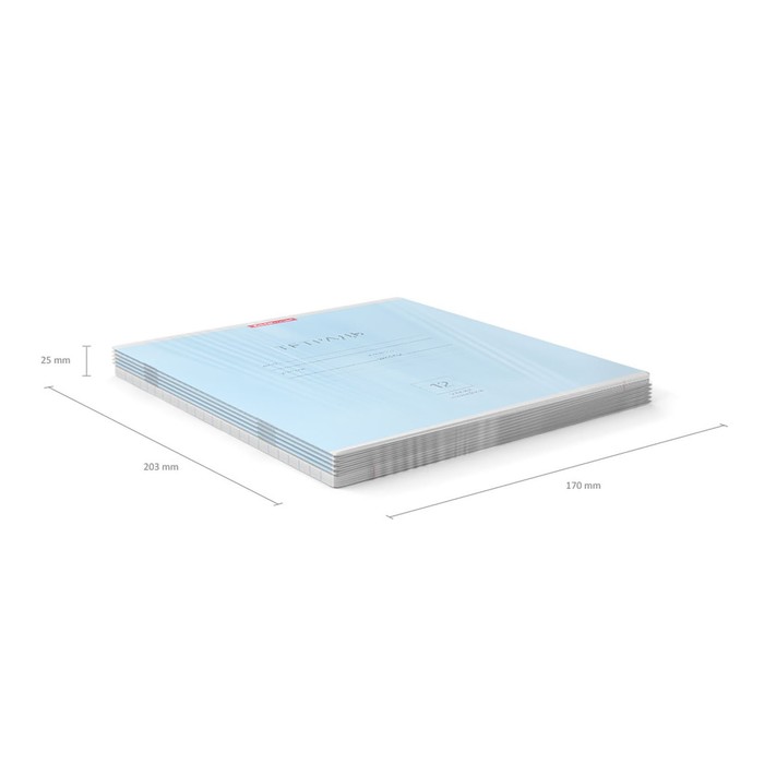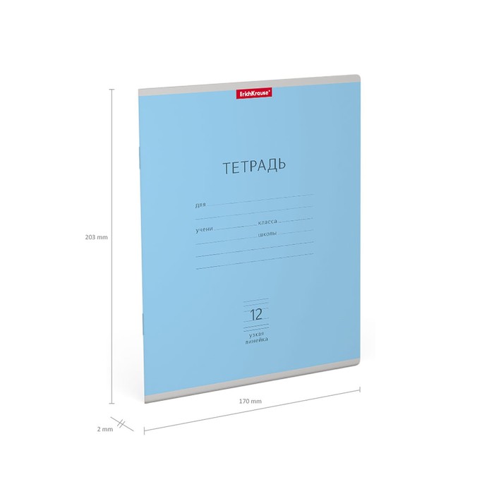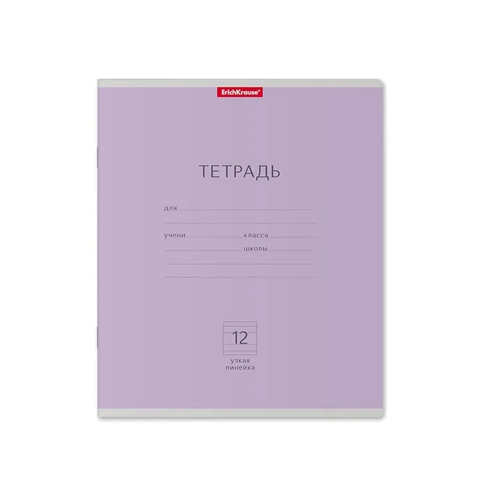 Тетрадь школьная ученическая формата А5+ (170х203 мм). Обложка из высококачественного мелованного картона плотностью 180 г/м2. В блоке 12 листов в узкую линейку с полями. Бумага офсетная плотностью 60 г/м2. Цвет линовки - синий. Скругленные уголки обложки и блока. Тип скрепления - скоба. Тетради одного цвета упакованы в термоусадочную пленку по 10 штук. Товар поставляется в нескольких вариантах цвета без возможности выбора.