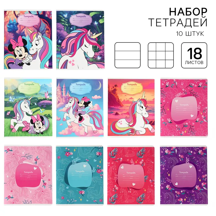 Тетрадь 18 листов, 5 шт. в клетку, 5 шт. в линейку, Минни Маус — Характеристики
