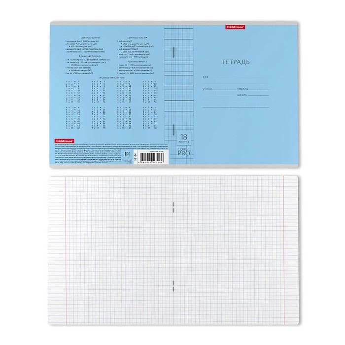 Тетрадь 18 листов в клетку, ErichKrause "Классика CoverPrо", пластиковая обложка, мелованный картон, блок офсет 100% белизна, МИКС, цена за 1 штуку — Характеристики
