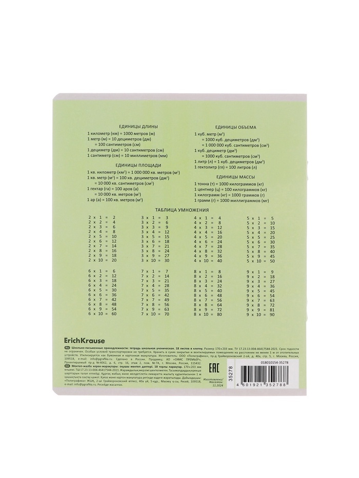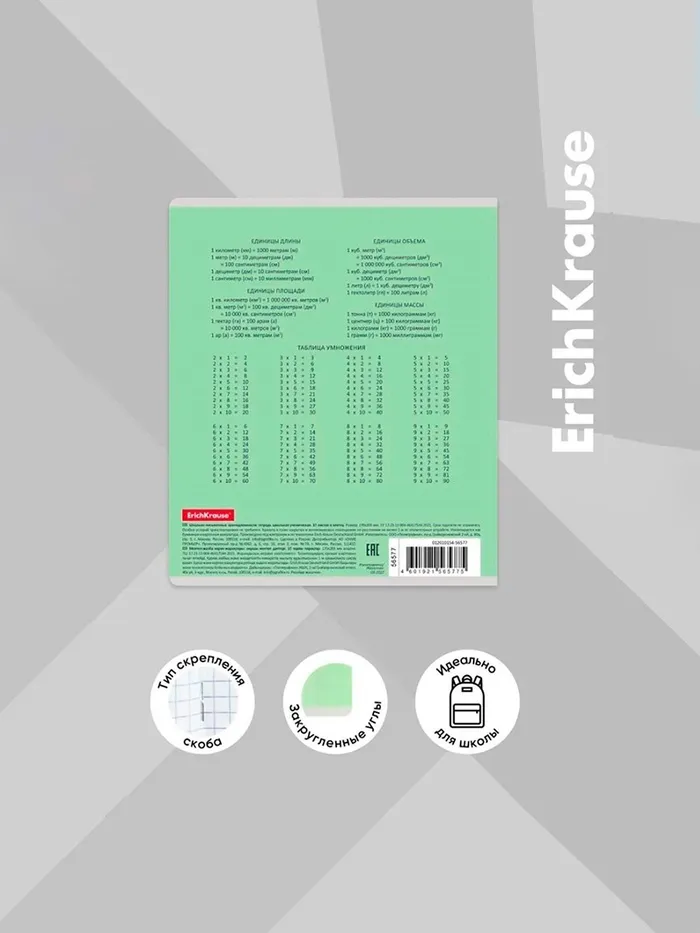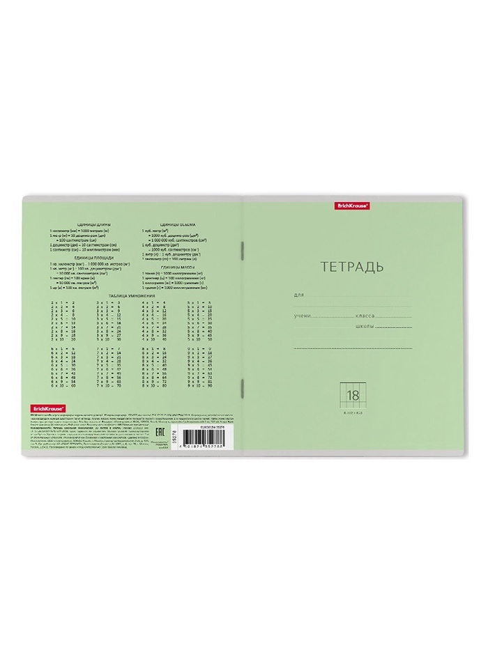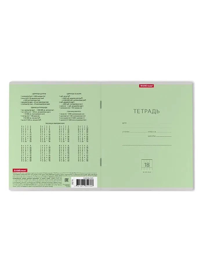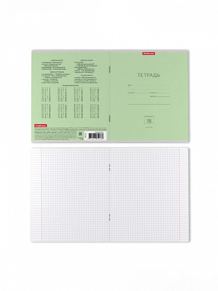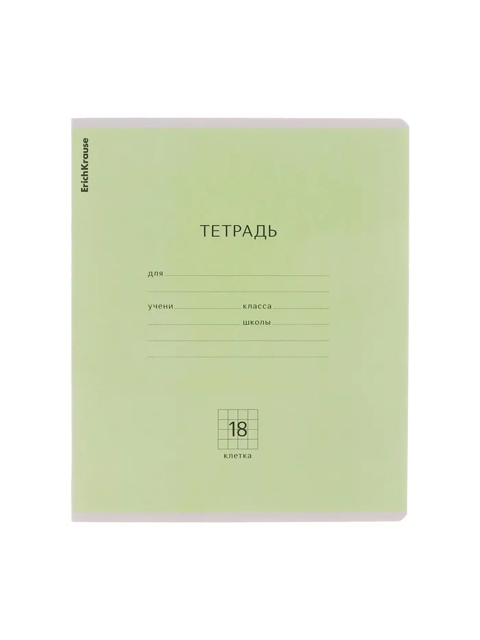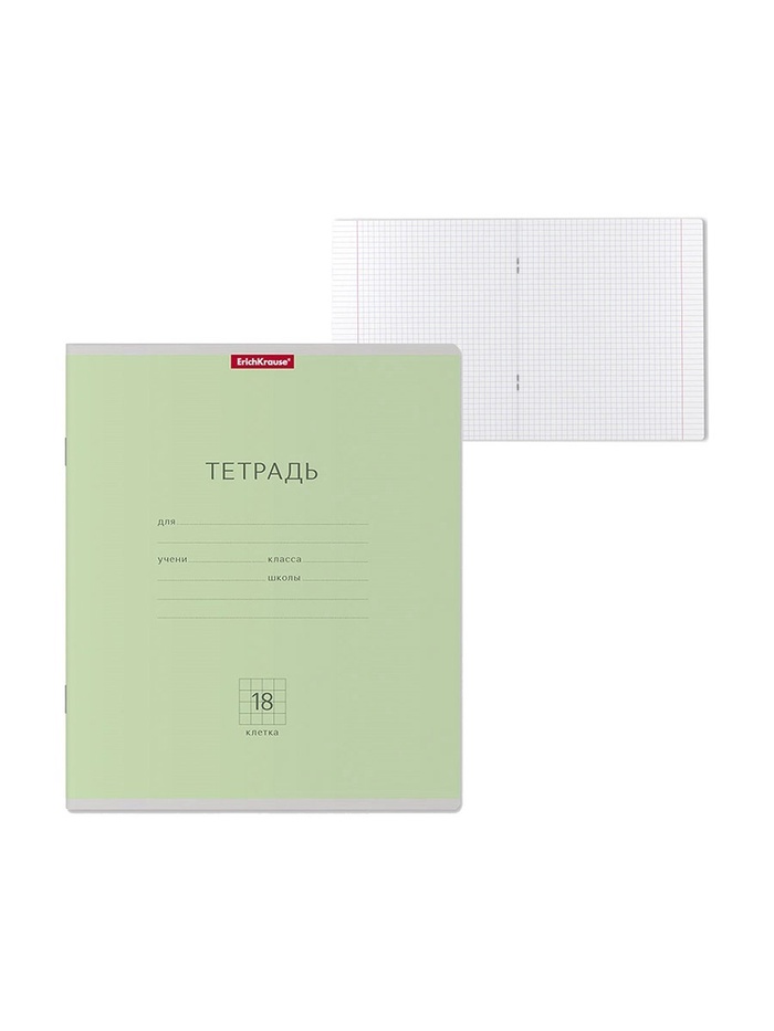 • Тетрадь 18 листов в клетку, ErichKrause «Классика», обложка мелованный картон, блок офсет 100% белизна, зелёная — Характеристики