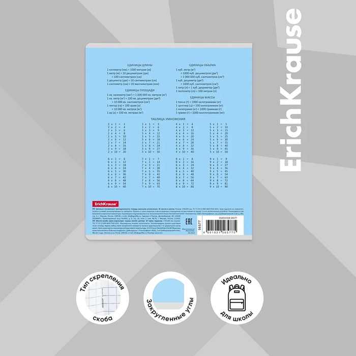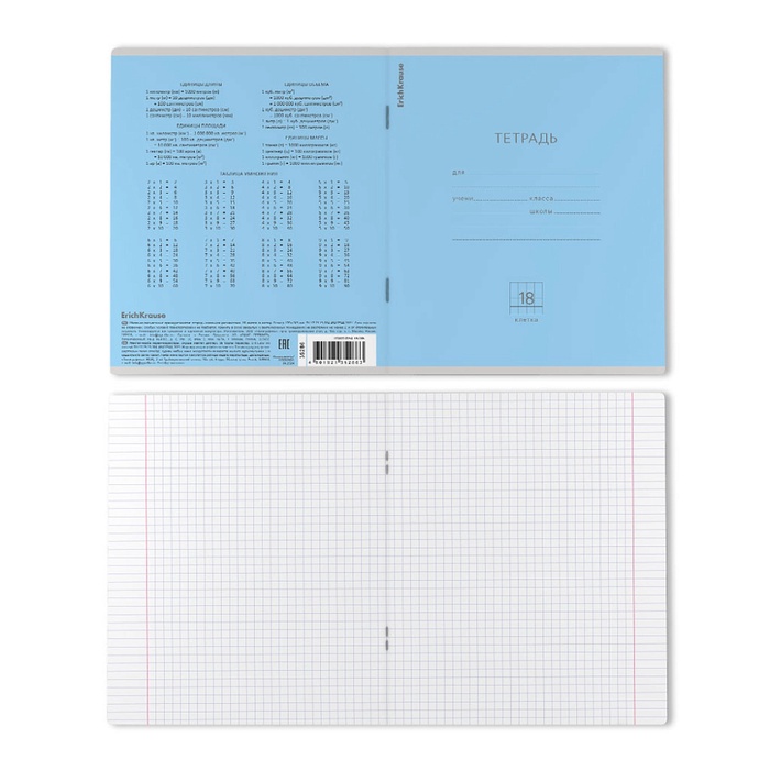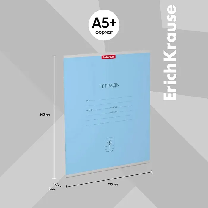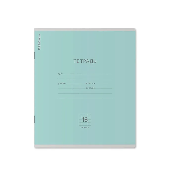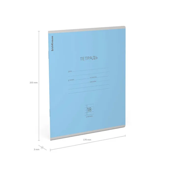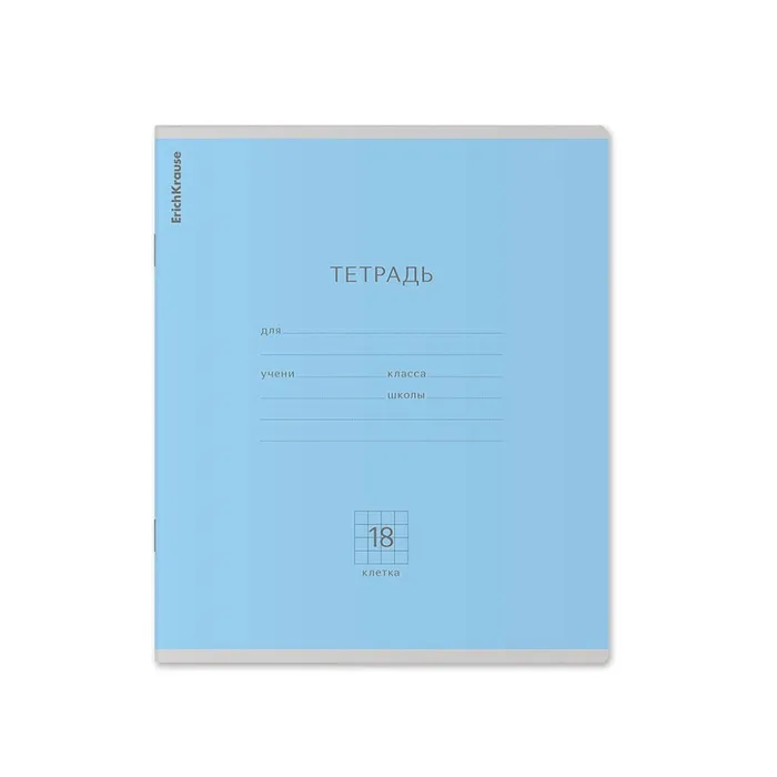 Тетрадь школьная ученическая формата А5+ (170х203 мм). Обложка из высококачественного мелованного картона плотностью 180 г/м2. В блоке 18 листов в клетку с полями. Бумага офсетная плотностью 60 г/м2. Цвет линовки - синий. Скругленные уголки обложки и блока. Тип скрепления - скоба. Тетради одного цвета упакованы в термоусадочную пленку по 10 штук. Товар поставляется в нескольких вариантах цвета без возможности выбора.