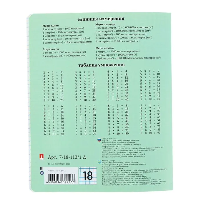 Тетрадь 18 листов в клетку «Народная», обложка мелованная бумага, зеленый — Характеристики
