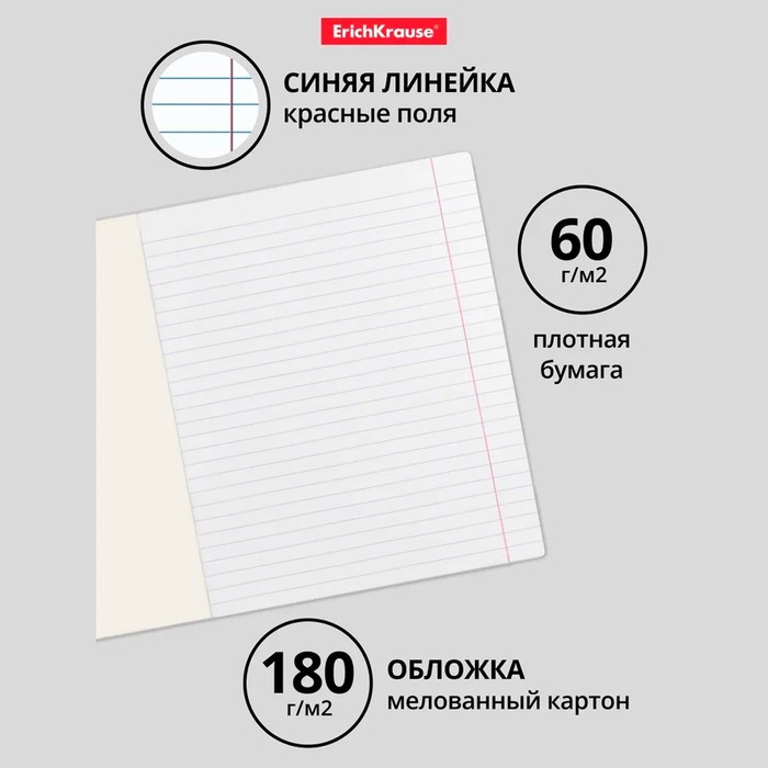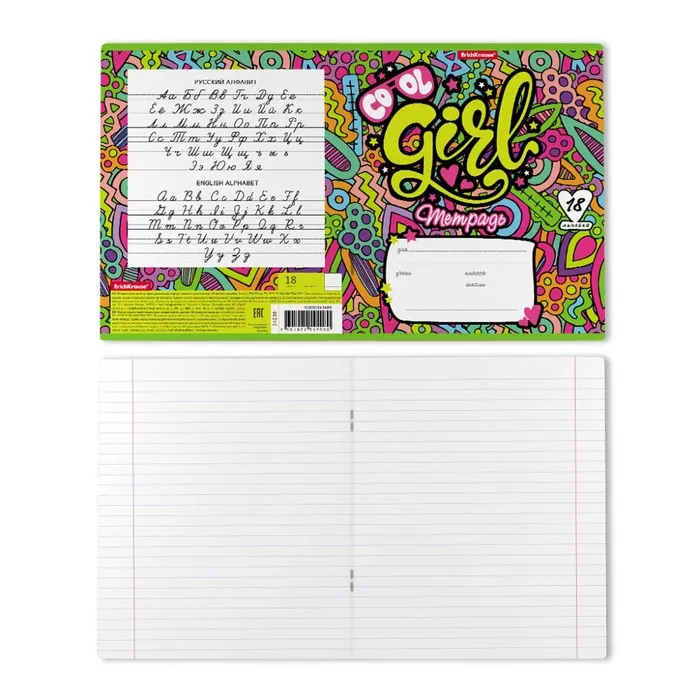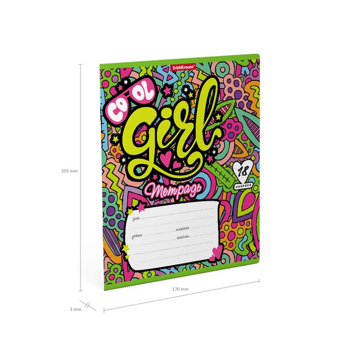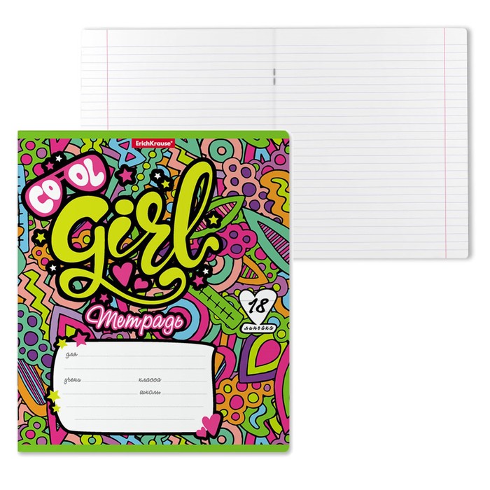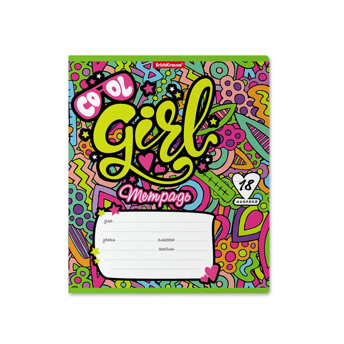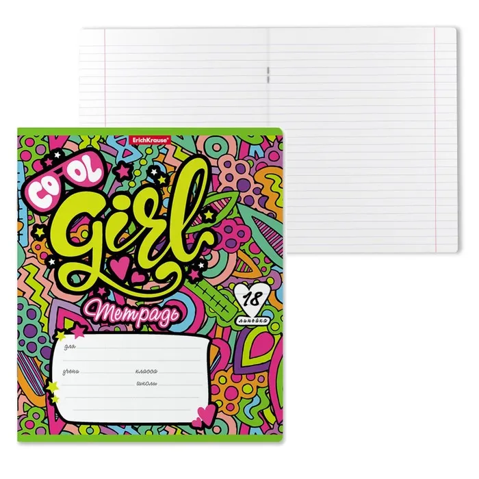 Тетрадь 18 листов в линейку, ErichKrause Cool Girl, обложка мелованный картон, блок офсет 100% белизна, с принтом — Характеристики