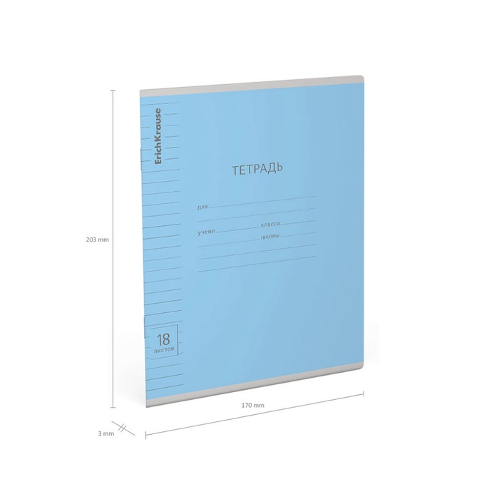 Тетрадь 18 листов в линейку ErichKrause «Классика с линовкой», картонная обложка, голубая — Характеристики